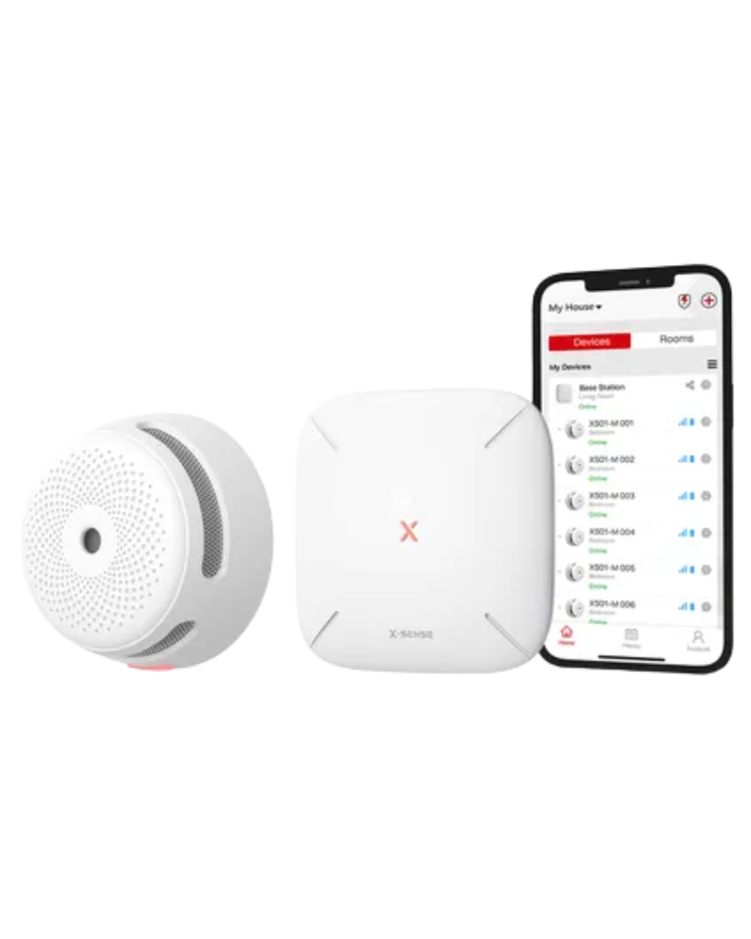 - SBS50 : Station de base Wi-Fi intelligente, qui connecte les détecteurs X-Sense à Internet pour permettre la gestion à distance et l’envoi d’alertes en temps réel sur smartphone via l’application X-Sense Home Security.