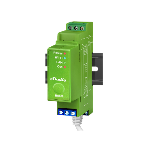 Shelly Pro Dimmer 1PM : dimmer 1 canal DIN avec mesure de puissance jusqu’à 200 W, connectivité Wi-Fi / LAN / Bluetooth, entrées pour interrupteurs physiques, et fonctionnalités avancées de contrôle de luminosité, tout en assurant sécurité électrique et compatibilité domotique.